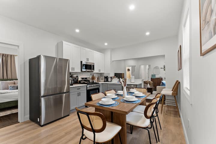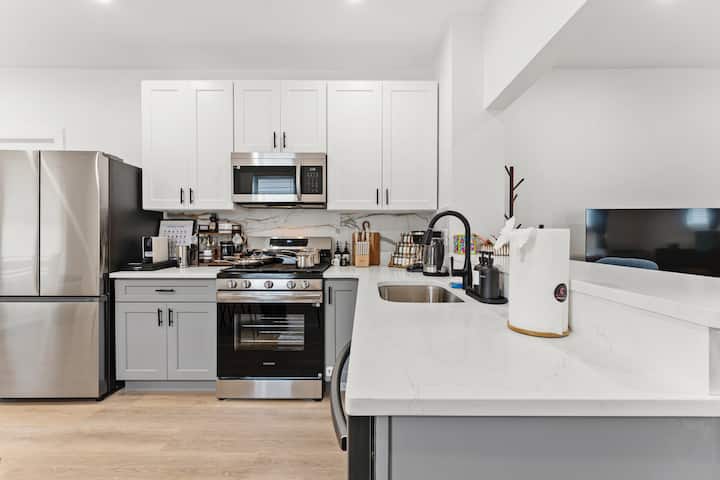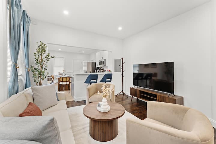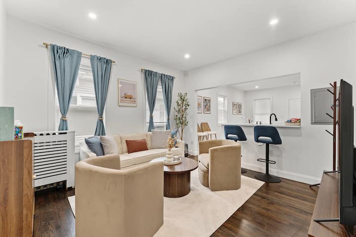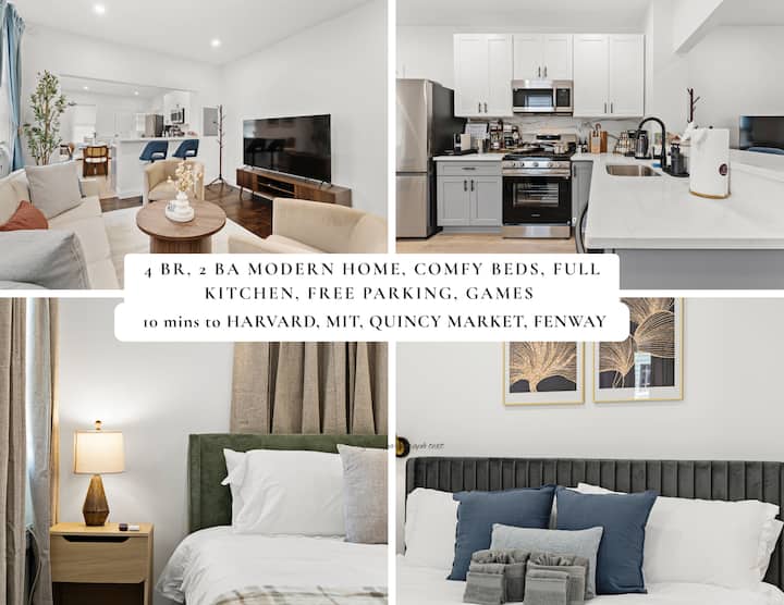 Cook, connect, and unwind — your modern home away from home. This family-friendly house has been thoughtfully furnished with brand-new decor and comfortable bedding, to ensure a restful and comfortable stay for our guests. The space Discover the perfect balance of comfort, convenience, and modern design in this thoughtfully furnished Somerville home. Located just minutes from Boston’s historic and cultural landmarks, you’ll enjoy the best of city life while returning each day to a calm and…